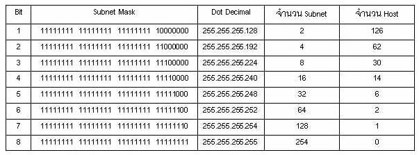 จำนวน Subnet = 2n - 2 เมื่อ n คือ จำนวน bit ของหมายเลข Subnet