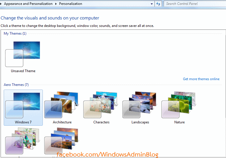 ในส่วน Personalization ของ Windows 8 Pre-release (Build 7989) x64 จะมีจำนวนธีมให้เลือกใช้งานไม่มากนักลักษณะดังรูปที่ 7. ซึ่งคิดว่าน่าจะได้รับการปรับปรุงให้ดีขึ้นในเวอร์ชัน Beta ที่จะออกในอนาคตเช่นกัน