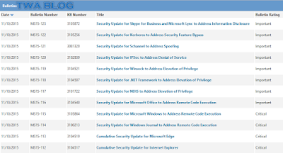 สำหรับรายชื่ออัปเดตความปลอดภัยเดือนพฤศจิกายน 2558 มีดังต่อไปนี้